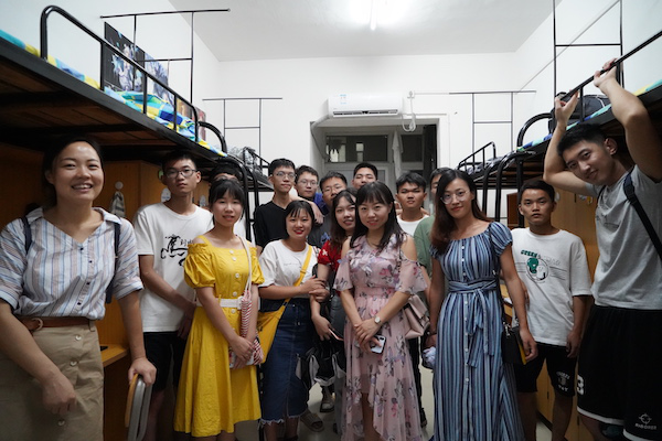 喜迎来自全国近20个省市、自治区的新生。为全面了解我院新生的住宿和学习情况,帮助新生尽早适应新学校和新变化,8月29日晚7点,院长李剑波教授、院党委书记赵猛老师以及季多武副院长、周鹏飞副书记、田华副院长、刘晓丽副院长、团委书记管胜昔老师、研工办林瑜老师、新生班主任等老师与学生干部、新生辅导员一道,走访了新生宿舍,看望并慰问新生。