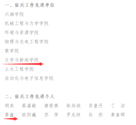 根据《关于评选湘潭大学2022年度征兵工作先进单位和先进个人的通知》,经自主申报、学院推荐、集中评选,我院获评2022年度征兵工作先进单位,龚鑫荣获征兵工作先进个人。