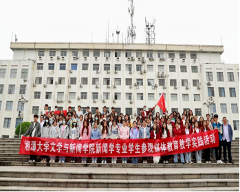 上午八点,2022级新闻学专业学生在第三教学楼合影留念,分班级、分批次抵达湘潭日报、湘潭广播电视台、岳塘区融媒体中心进行参观学习。
