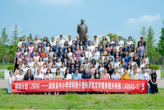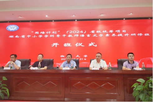 党委副书记周鹏飞、院长助理郭明浩、湖南省语言文字推广基地(湘潭大学)首席专家陈山青和湖南省100名中小学骨干教师参加开班仪式。开班仪式由湘潭大学文学与新闻学院院长、“国培计划”(2024)省级统筹项目(湘潭大学)负责人雷磊主持。