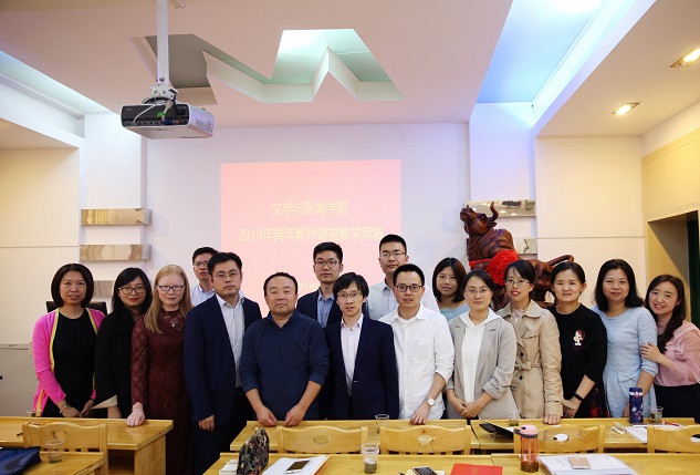 副院长刘晓丽老师主持。 参与竞赛的十二名青年教师按照抽签顺序依次进行每人十五分钟的授课展示。吴钊老师打头阵,通过列举网红口红、哈密刺绣耳机和湘大校友纪念物等实例,引导大家思考文化创意产业与与其他文化产业产品的关系,并总结了自己对于文化创意产业的定义和理解。沈丽琴老师围绕生活中随处可见的“满减”促销活动,从消费者心态入手,总结出商家正确送赠品的三种方法。 陈维超老师从传播主体、传播内容、受众、技术四个方面分析了智能化媒体时代的传播环境。马正锋老师分析余华文章片段,结合时代背景,证明其深受川端康成、卡夫卡等作家影响的事实。陈梦兮老师视角独特地分析了看似耳熟能详的《关雎》中少有人关注的四个问题,语言生动活泼,令人眼前一亮、印象深刻。 带着对《堂吉诃德》这本书中主要人物行为的疑问,张慧佳老师从小说产生的背景、地位、影响和内容等方面表达了她对小说人物之“奇”的思考。丰杰老师做了题为《殷夫的诗》的讲授,介绍了“左联五烈士”之一的殷夫的生平与创作。谷文彬老师用激情昂扬、妙趣横生的话语,围绕“趣谈《西游记》小说妖名”这一主题,用创新视角研究说明了书中“小钻风”和“奔波儿灞”“灞波儿奔”的名字含义。来森华老师语言幽默的讲述了古人的普遍技能“御”和古人“上驾校”的故事,并由古人“驾车”上升到“治国治家”之道。 郝二涛老师总结三要素说明文学作品语言表意的含蓄性与丰富性。周海锋老师列举避讳定义的实例阐述了如何利用避讳鉴定古籍版本。杨逍老师从朋友圈发动态者的发动态频率、权限设置、互动回复、动态质量方面,教我们通过各个因素分析一个人如何维持自身形象,引发我们思考审美问题,运用理论观察生活。十二名青年教师的讲课或激情澎湃、自信满满,或含蓄幽默、娓娓道来,展现了教师应有的素质与风范。 授课结束后,四位评委老师进行了点评。华进老师提出授课时应注意情境的营造、问题的导入和语言、姿态的表达。“如何能获得学生的欢迎呢?我认为有三点,‘始于颜值’‘陷于才华’‘忠于人品’”,孙丰国老师如是说,并阐释了这三点的真正内涵分别是站姿语调和演示文稿设计问题、讲课内容处理多样性问题以及与学生加强关联问题。沈云霞老师在肯定青年教师的精彩授课后,提出了“内容的设计需要打磨”“语言表达很重要”“内容整体性”等需要注意的问题,强调了经验的重要性。宋德发老师从教学态度、超强的语言能力、善于举例、善于联系生活、有一定思想性、有问题意识、有意思、自信有气场、有鲜明的个人风格等九个方面阐述了他对于做一名合格大学教师的看法。之后学生评委代表也表达了对表现精彩的教师的喜爱,并提出了自己的建议。 颁奖环节在最后举行。陈梦兮老师获得一等奖,丰杰、谷文彬老师获得二等奖,张慧佳老师、沈丽琴老师、杨逍老师获得三等奖,郝二涛老师、周海锋老师、来森华老师、马正锋老师、陈维超老师和吴钊老师获得优秀奖。 青年教师讲课竞赛是足球赛事直播