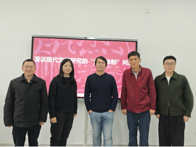 丰杰老师主持,戴海光老师、任传印老师、23、24级中国现当代文学、比较文学、文艺学方向研究生现场聆听。