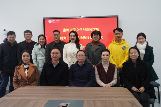 与湖南省播音主持研究会、湖南工业大学文学与新闻传播学院、湖南红网新媒体集团株洲站合作共建研究生实习基地协议签署仪式于文科楼214会议室成功举办。湖南省播音主持研究会会长仇晓、驻会副会长曾致、副会长何娟,湖南工业大学文学与新闻传播学院院长王丽萍,湖南红网新媒体集团株洲站站长李卫林,湖南工业大学文学与新闻传播学院副院长蒋军凤、汉语培训中心主任曾慧卿一行,以及足球赛事直播