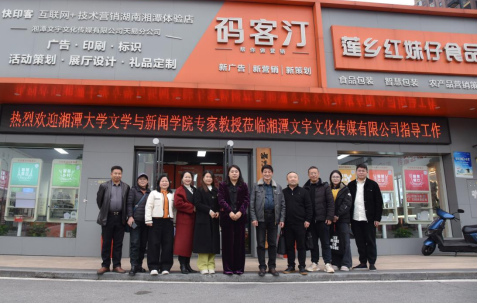 3月11日,我院广告系教师孙丰国、王苑丞、向宇、陈暖一行4人赴湘潭文宇文化传媒有限公司调研。湘潭市炎黄文化研究会会长唐跃龙、云湖桥剪纸第四代传承人冯程程女士等一同参加交流座谈。