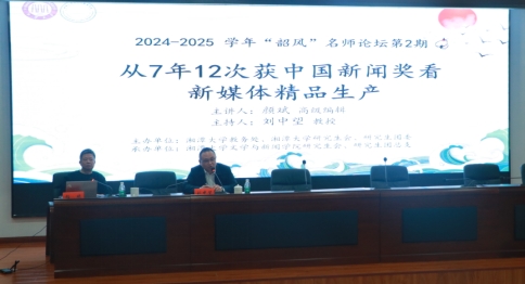 “这不是一个人的勋章,而是一群人在媒体融合大潮中抢滩登陆的集体突围。”讲座开场,湘潭大学副校长刘中望教授用一组数据勾勒出主讲人的专业厚度:从业二十余年,12件作品摘得中国新闻奖,其中4次问鼎一等奖;2021年入选中宣部文化名家暨“四个一批”人才,2023年被评为国务院特殊津贴专家。