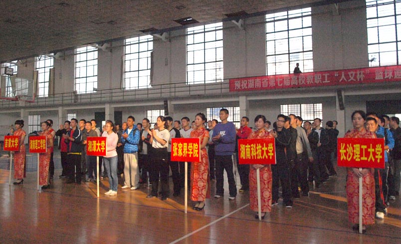 11月9日上午,由我院承办的湖南省第七届高校“人文杯” 篮球邀请赛在湘潭大学体训馆隆重开幕。湘潭大学、湖南科技大学、长沙理工大学、吉首大学、湖南理工学院、张家界学院6所省内高校的文科院系组队参赛。湘潭大学副校长戴飞军、组委会主任、我院季水河教授,我院院长李剑波教授出席了开幕式并讲话。开幕式后,各参赛队本着“友谊第一、比赛第二”的精神,克服了赛事密集、连续作战的困难,为观众献上了一场场精彩的比赛。最终,张家界学院、吉首大学、湖南科技大学分获冠、亚、季军,我院获得第四名。9日晚,在足球赛事直播