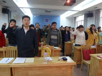 “我志愿加入中国共产党,拥护党的纲领,遵守党的章程,履行党员义务,执行党的决定……”全体党员面向党旗重温入党誓词,铿锵有力的誓言声响彻整个三教。重温入党誓词加深对党的性质、宗旨和荣辱观的认识。通过宣誓,研究生党员们思想得到再次升华,坚定了共产主义信念,增强了拥护党的领导的信心和决心。