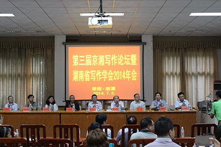 7月5日—6日,由湖南写作学会与北京市写作学会联合主办、我院承办的“第三届京湘写作论坛暨湖南写作学会2014年会”在我校召开,来自湖南和北京的近50位代表到会。武汉大学文学院戴红贤博士作为中国写作学会特邀专家与会。湘潭大学副校长高协平莅会致辞。
