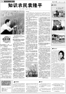 2006117日,我和胡婷玲采写的长篇通讯《知识农民袁隆平》发表在光明日报人物周刊,登了一个整版。