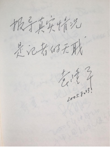 我有一个留言本,上面是我的重要采访对象的留言。袁老师当然也留了言的。他的留言是:“报导真实情况 是记者的天职。——袁隆平2005813日”