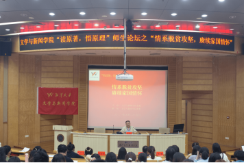 论坛由光明日报社驻湖南记者站原站长、文学与新闻学院教授唐湘岳主讲,他结合记者的职业经历,讲述了他“见乡愁、寄乡愁、解乡愁”系列报道和精准扶贫采访过程中发掘和报道的一些典型人物。有“最穷却有最高道德境界”的何西良、有“奋勇的陪伴”的主人公刘奋勇、有在“青山留下一首歌”的“90后”扶贫英雄方璇、有牺牲在扶贫一线的“时代楷模”黄诗燕等。从脱贫对象到扶贫队员,唐湘岳教授通过对他采访对象故事的讲述,较为系统地展示了一副湖南脱贫攻坚的生动画卷。他认为有悲天悯人的情怀,有脚踏实地的行动,才能真正成为一个好记者,才能真正展现出新闻人的家国情怀。因此,他亲切勉励同学们“要有人民意识,脚踏泥土,关心人民疾苦;要有证据意识,实事求是,有一分材料说一分话。”