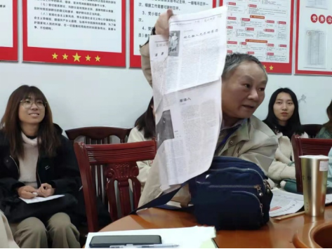 唐湘岳教授首先向同学们展示《光明日报》刊登的由他本人及我院硕士研究生侯晓慧同学撰写的长篇报告文学《境界》,并借此契机激励大家培养肯吃苦、能吃苦的精神。侯晓慧同学从《境界》一文出发,总结并分享自己的采写经验。她认为采访只要心诚意正,认真对待采访对象,都能找出不同的亮点,挖掘出独特的故事。