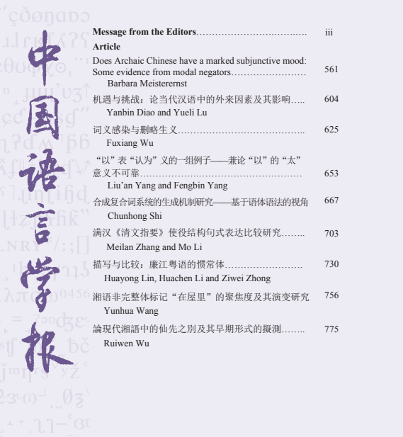 文章主旨:湘语中的“在屋里”既能表示某一时点动作正在进行,也能表示某一时段动作的持续进行或惯常发生,还可以与形容词共线表示某种状态,呈现出“低聚焦”的特点,“在屋里”在演变过程中与“在这/那里”相互竞争,经历了“高聚焦>低聚焦>零聚焦”的动态过程,其“低聚焦”性与“在这/那里”的“高聚焦”性在非完整体内部形成对立。“在屋里”的虚化受原型模型的驱动,同时隐喻、类推和重新分析等机制发挥了重要作用,其过程同时伴随主观性增强的特征。