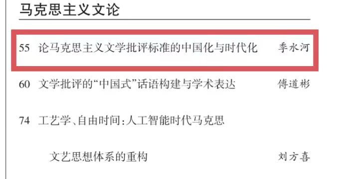 近日,我院季水河教授的学术论文《论马克思主义文学批评标准的中国化与时代化》(原载《文学评论》2023年第2期),被人大复印报刊资料《文艺理论》2023年第10期全文转载。