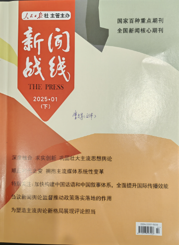 我院兼职教授、硕士研究生导师曹辉与硕士研究生陈燚在《新闻战线》(2025年1月)发表论文《讲好故事,提升国际传播效能》。