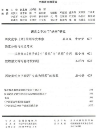 我院博士生唐怡静在《中国语文》(CSSCI,校定一类)2025年第5期发表论文《再论契约文书套语“立此为照者”的来源》。