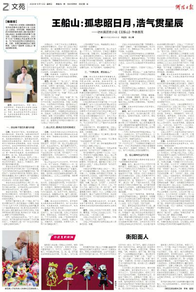中南大学人文学院二级教授聂茂创作的四卷本长篇历史小说《王船山》出版后,好评如潮;根据他撰写的文学脚本制作成的4集大型纪录片《船山先生》在湖南卫视和芒果TV播出后,引起更大的社会关注。2025年10月7日是船山先生诞辰406周年,为了纪念这位伟大乡贤和学问大家,日前,本报记者独家采访了聂茂教授,让我们一起探寻《王船山》背后的精彩故事。