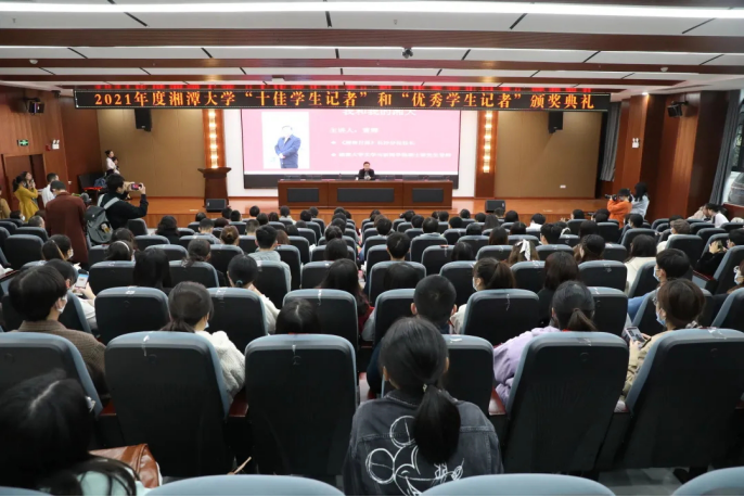 明天就是记者节了,在座的都是湘大学生记者,将来在你们中间又会出现一大批像唐湘岳师兄、严文斌师兄这样的新闻大咖。