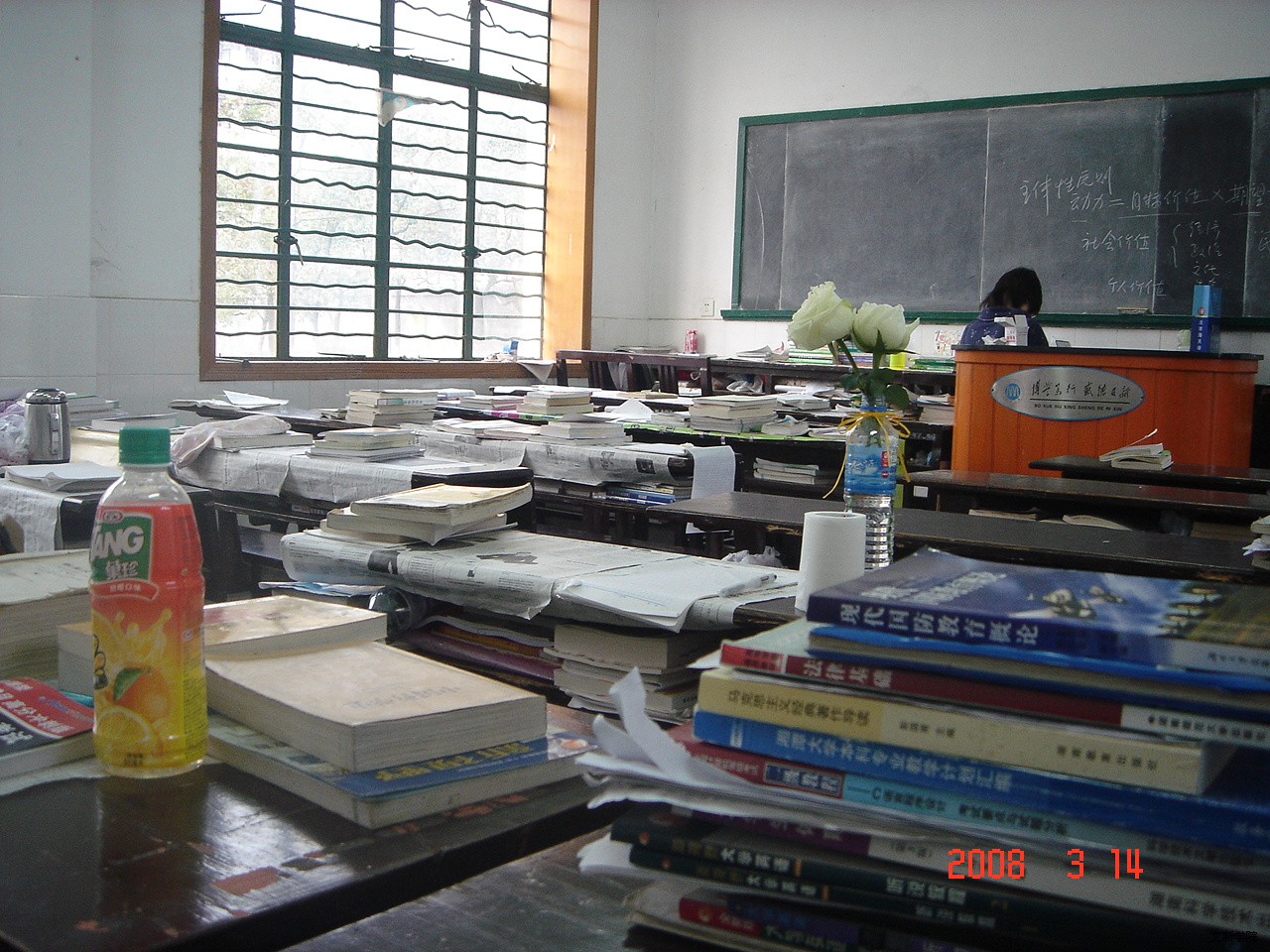 “不知哪位大哥大姐在昨天下午5、6-7、8节课之间把鄙人书桌(一组二号)上的大部头字典——牛津高阶给借去参阅了,还没留下个字条,害我担心,烦请把他归还吧!我还等着呢。”3月14日,第一教学楼306教室门上贴着这样一段话。